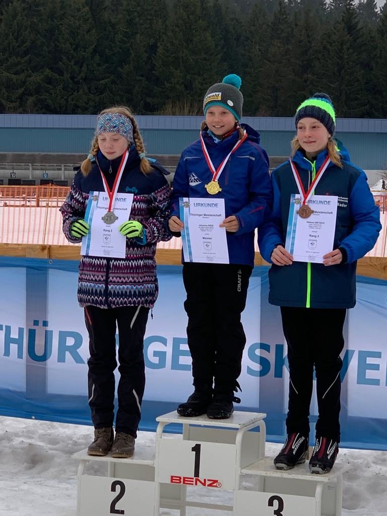 Heidi Häfner vom TSV Benshausen gewann in der AK 8 w. Christian Weiß kam in der AK 9 m auf den Bronzerang. Nach seinem Meistertitel vom Vortag wurde Max Haseney mit einem Rückstand von nur 6,4 Sekunden dritter. Dennoch blieb er erster in der Pokalwertung des Thüringer Langlaufcups. Ihr perfektes Wochenende krönte Johanna Weiß mit ihrem zweiten Thüringer Meistertitel an diesem Wochenende. Auch sie startet somit weiter im gelber Trikot der führenden des Thüringer Langlaufcups. Einen sehr guten dritten Platz belegte ebenfalls Loris Theilig in der AK 13 m. Carolin Fehringer sicherte sich in der AK 13 w den Vizetitel. Till Zimmermann wurde in der AK 14 m dritter.