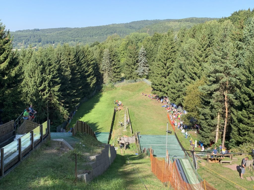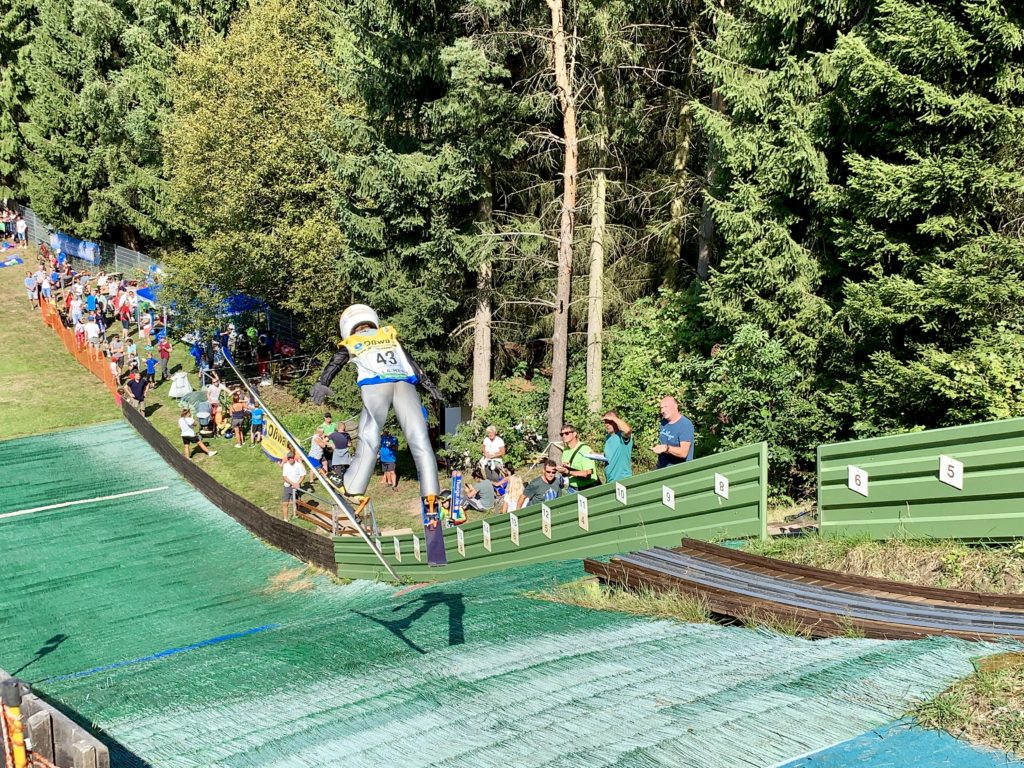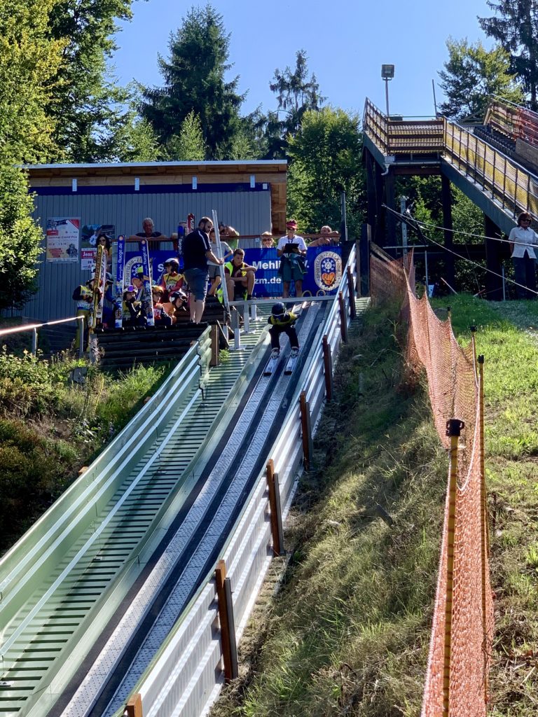 Bei herrlichen Sommerwetter konnten wir als Veranstalter 95 Sportler aus ganz Thüringen begrüßen. Während die Altersklassen S8 bis S12 ihre Sprünge auf den Schanzen am Stachelsrain in Zella-Mehlis absolvierten, sprangen die Altersklassen S13 bis S15 auf der neuen 70 Meter Schanze in Oberhof. Gelaufen wurde zum ersten Mal auf dem Rundweg um das Denkmal in Zella-Mehlis.