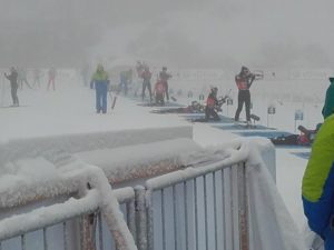 Am nächsten Tag war die Ausdauerfähigkeit unserer Sportler/-innen gefragt. Am Grenzadler in Oberhof ("Teller") ging es auf der längeren Strecke um die Plätze. Unsere Wachser hatten Glück mit dem Wetter gehabt, denn erst ab der AK 14 begann es zu schneien. Ab der AK 14 wurde die Strecke in der Skating-Technik zurückgelegt, davor im klassischen Stil.